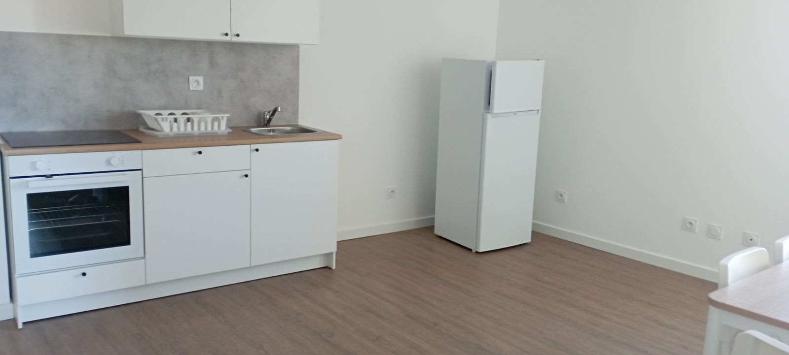 appartement T2 se composant: entrée, sejour avec cuisine ouverte, dégagement placard, chambre, salle de bains, WC séparés,